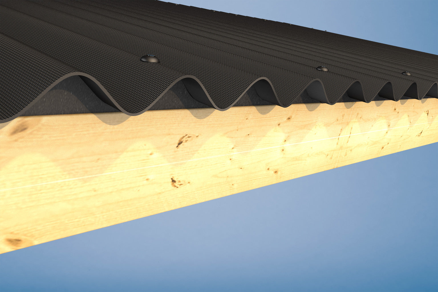 - lakštų eilės persidengia viena kitą bent 1 cm; jei stogo nuolydis mažas, o apkrova didelė, lakštų eilės turi persidengti viena kitą bent 20 cm;