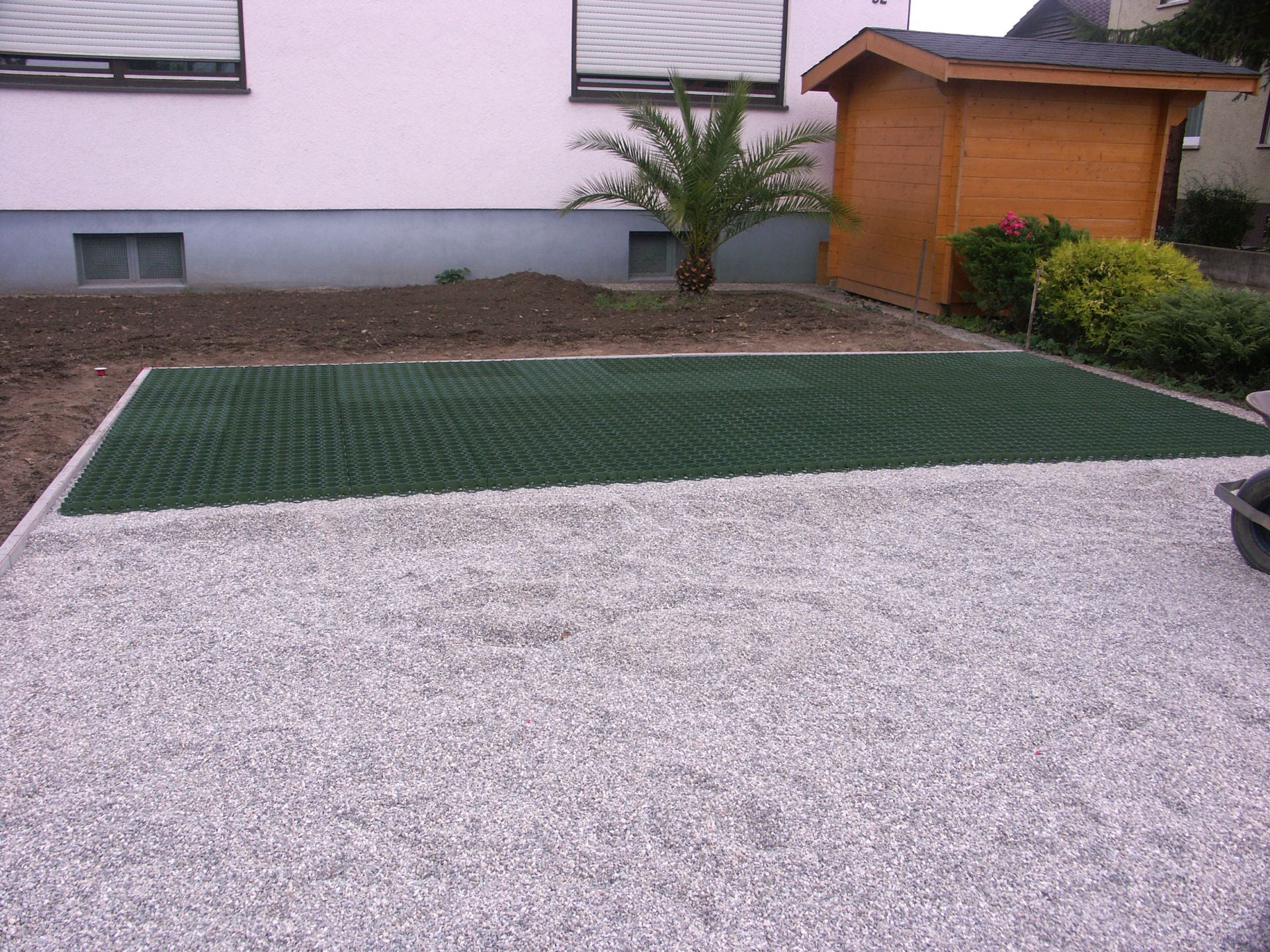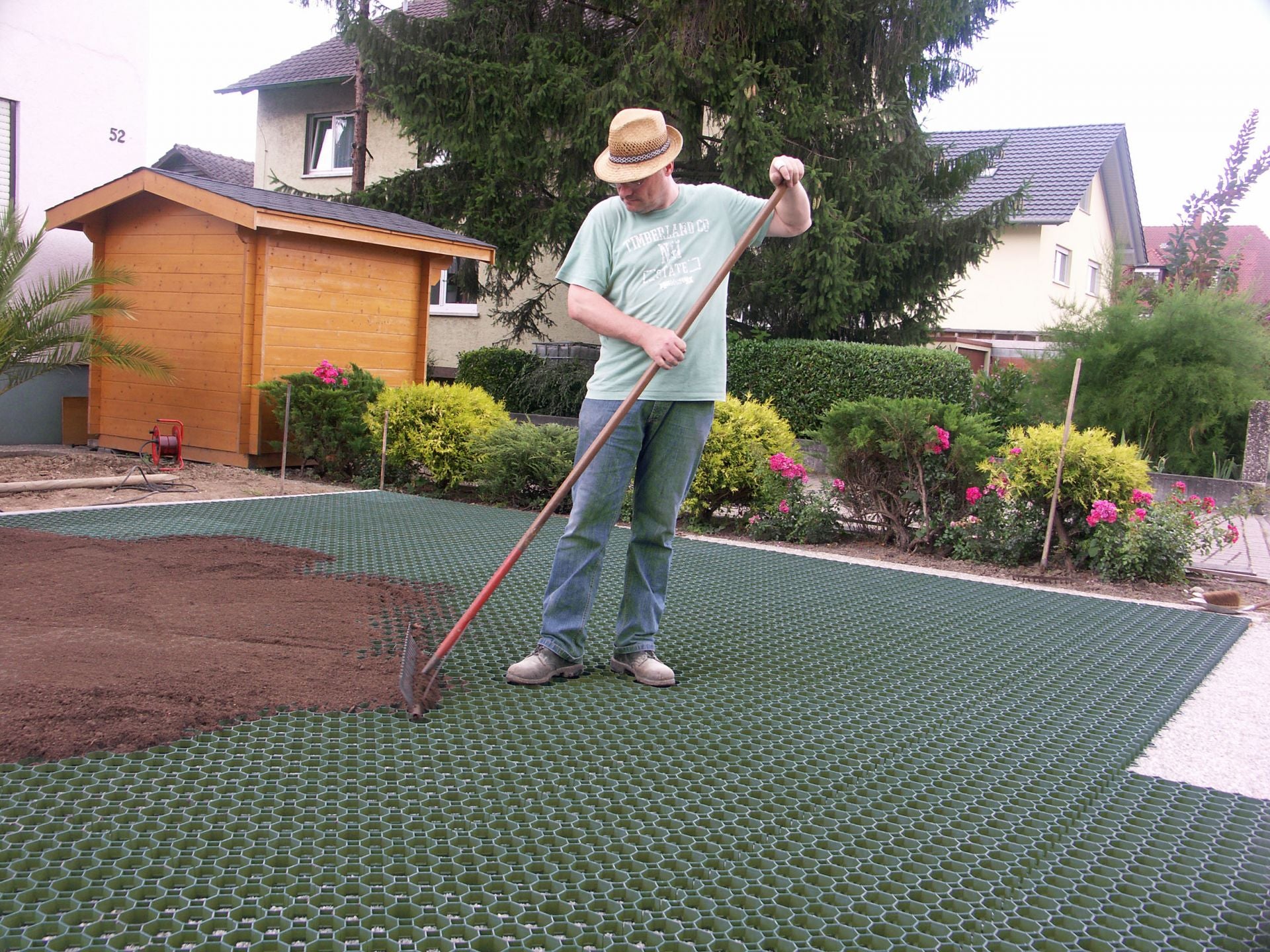 Pagrindo „pyragas“ yra svarbus gražiam kraštovaizdžio formavimui, nes, norint užtikrinti įsišaknijimą nuo vejos grotelių viršutinio krašto, reikia pašalinti bent 8 cm dirvožemio. Automobilių stovėjimo aikštelei rekomenduojame bent 30 cm gylio iškasą. Šis sluoksnis užpildomas žvyru arba perdirbtu skalda ir tolygiai sutankinamas. Automobilių stovėjimo aikštelės nuolydis turėtų būti maždaug 2 %, kad būtų skatinamas vandens nutekėjimas. Kitas smėlio ir dirvožemio mišinio sluoksnis pagerina drenažo efektą ir tuo pačiu metu pasižymi svarbiomis įsišaknijimo savybėmis. Sodo arba vejos dirvožemio sluoksnis (maždaug 4 cm) tiesiai po vejos grotelėmis žymiai pagerina įsišaknijimą ir turi įtakos vejos patvarumui. Paklojus vejos groteles, užpilamas dirvožemis ir sėjama tinkama veja. Paruoštą veją galima naudoti maždaug po 6 savaičių.