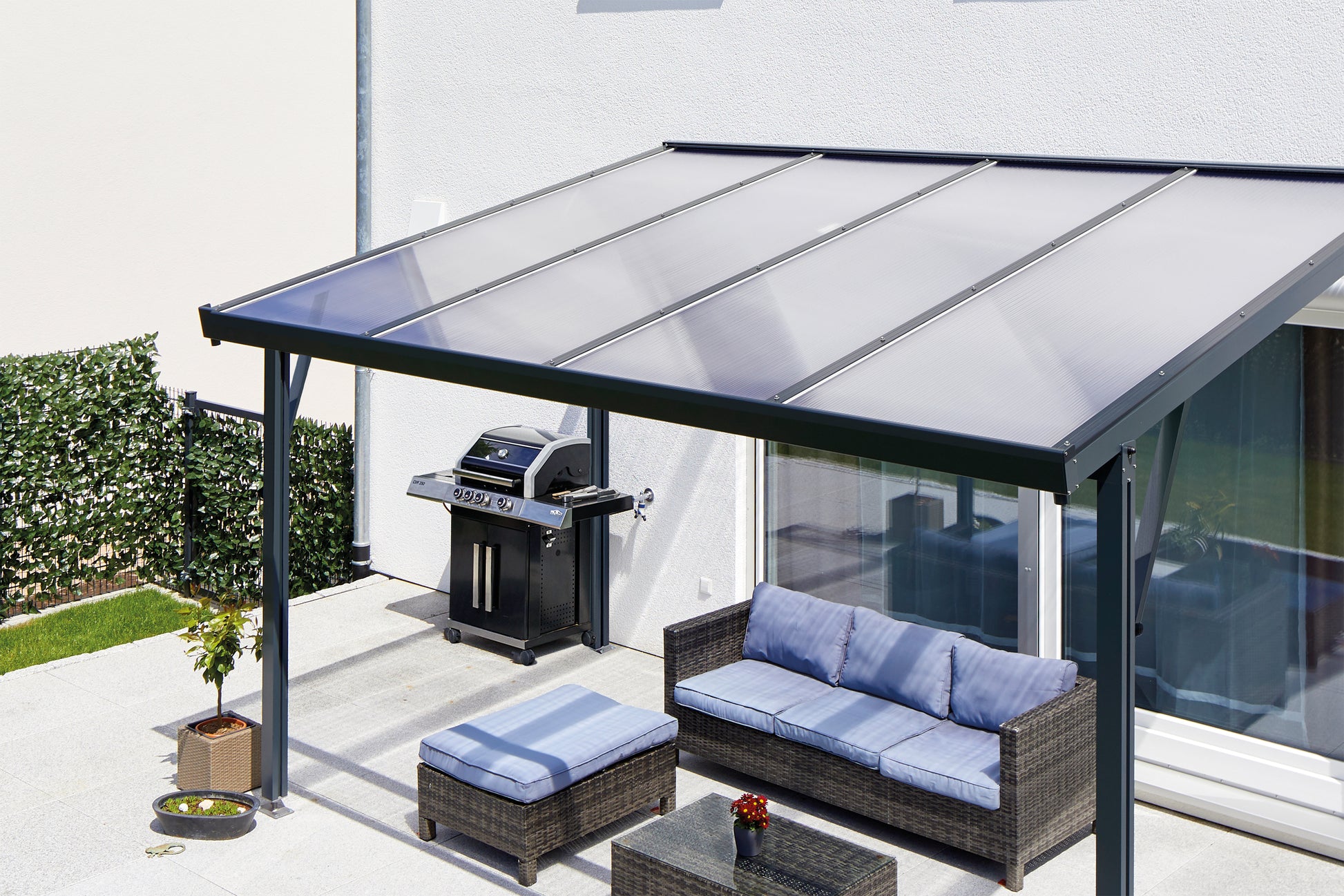 Vēl lielākai elastībai mēs piedāvājam arī Premium terases jumtu brīvstāvošā versijā. Papildu pamatu enkurs aizmugurē ļauj to uzstādīt nost no mājas sienas. Tas ļauj to novietot jebkurā vietā dārzā, pagalmā vai uz terases.